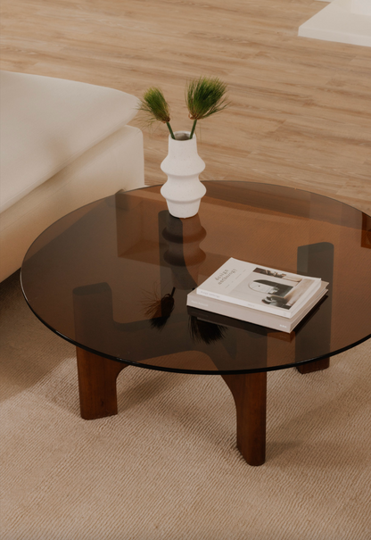 12mm Amber Tempered Glass, Rubber Wood Legs