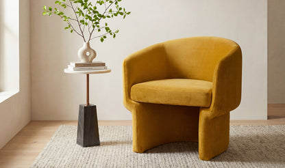 Not your typical velvety seat. The Franco occasional chair features a uniquely curved design for you to tuck right into. An idyllic contemporary-modern accent for your home styling.