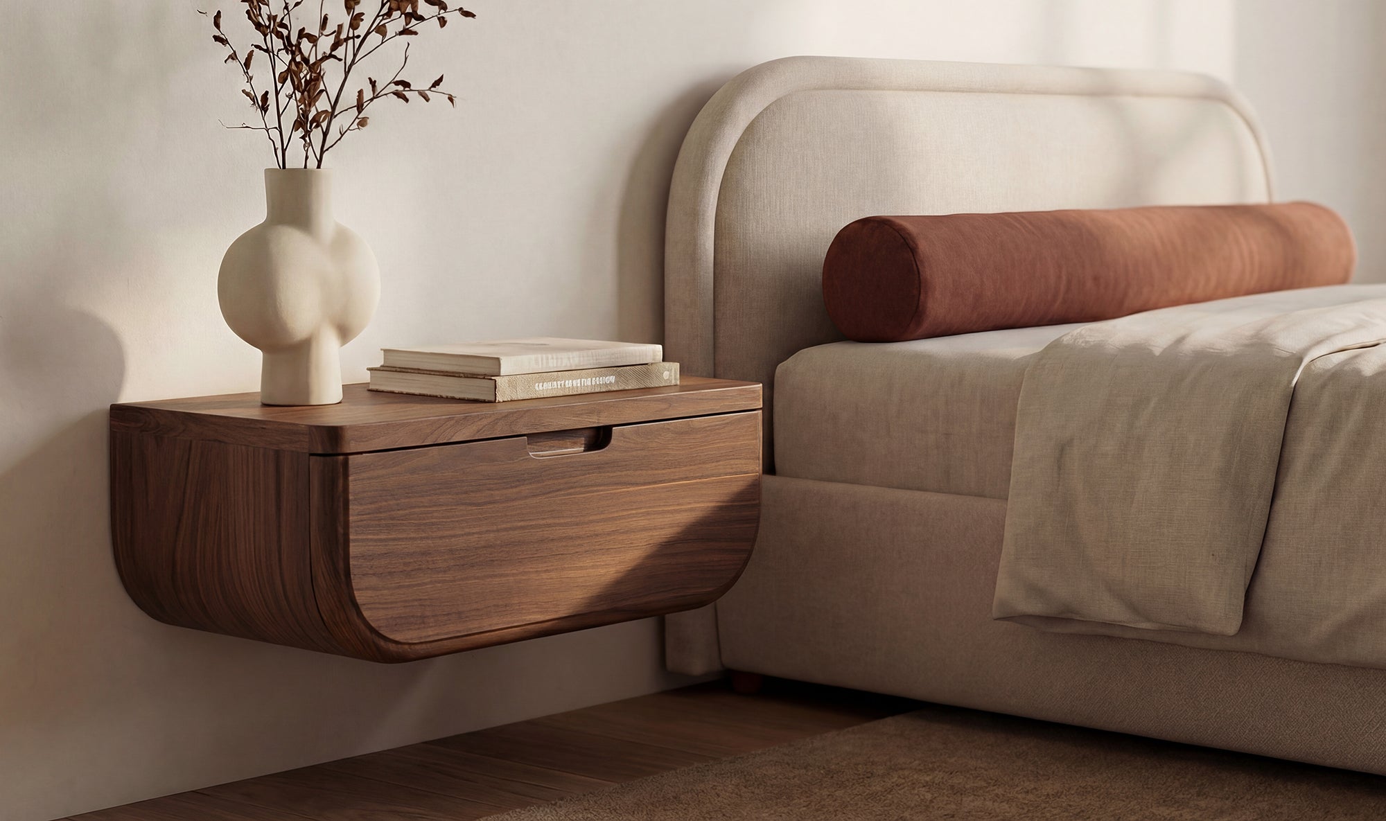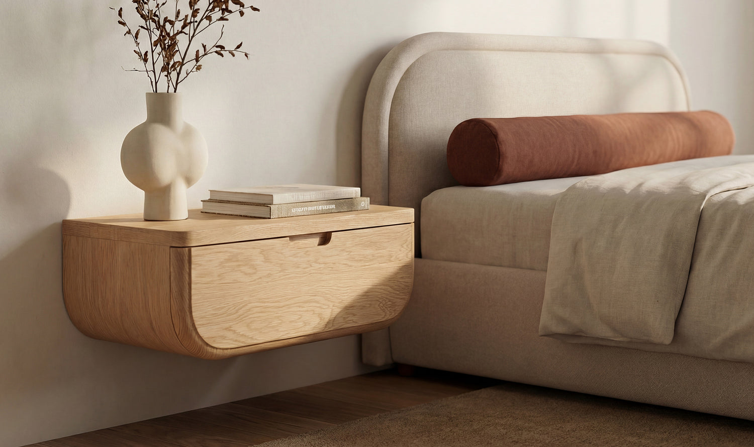 Soft Curved Profile: A rounded silhouette and clean front bring a modern, intentional feel to the bedside, fitting naturally into smaller rooms.