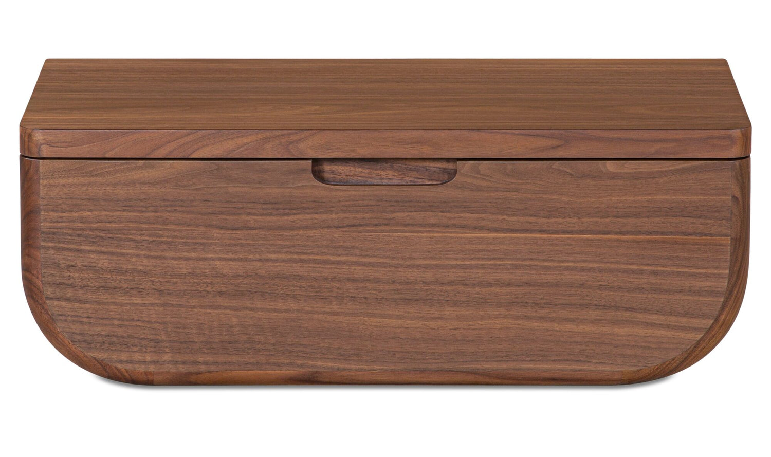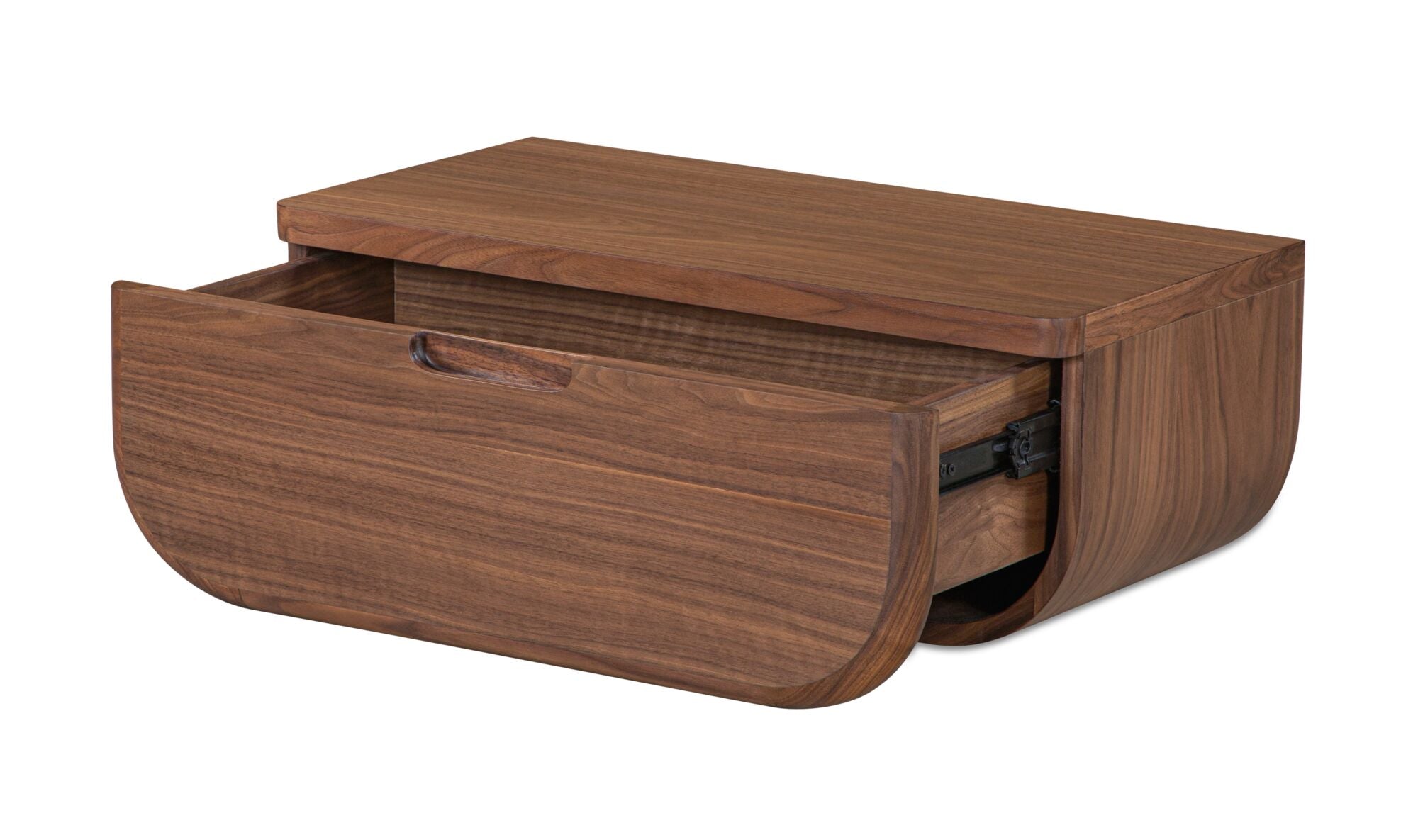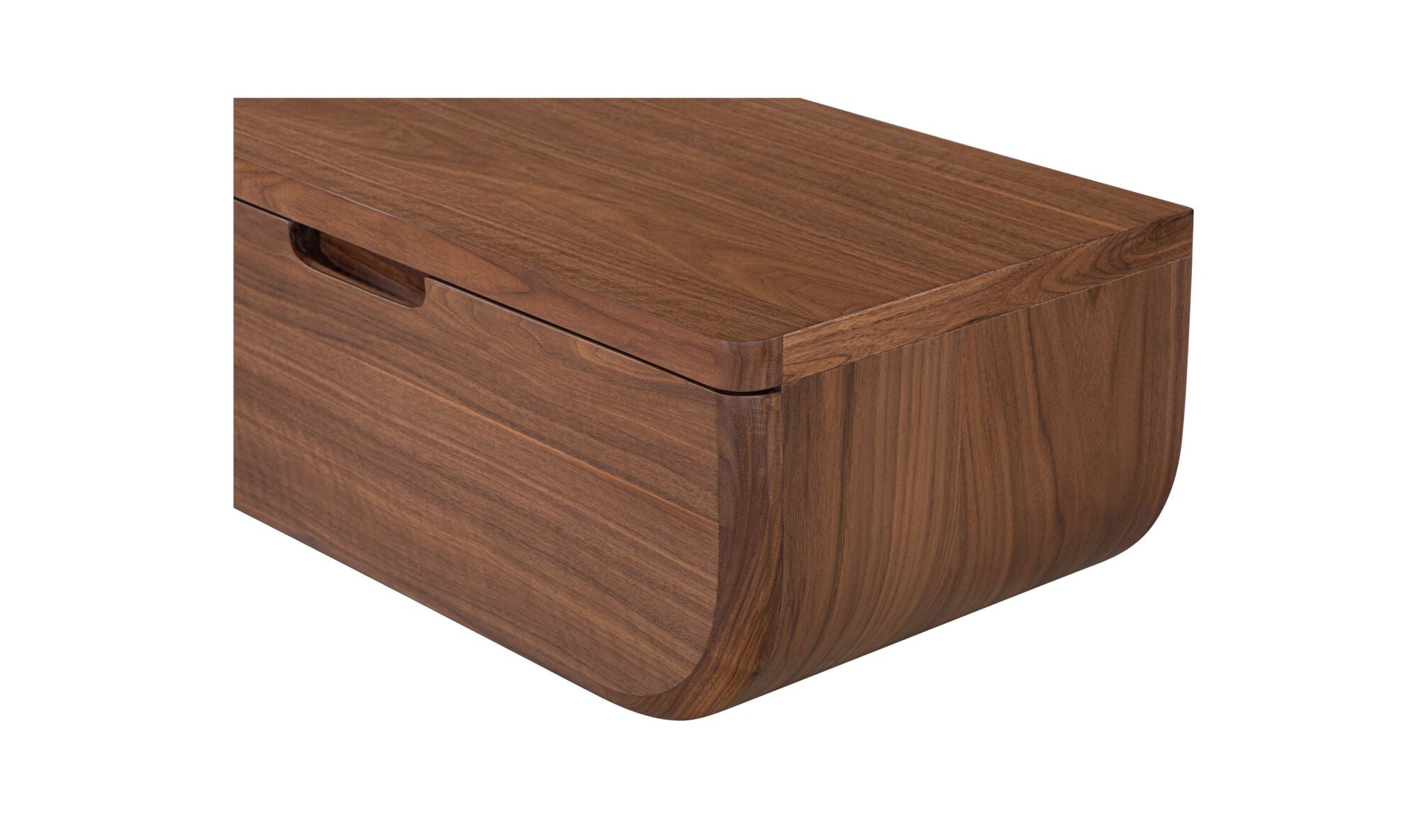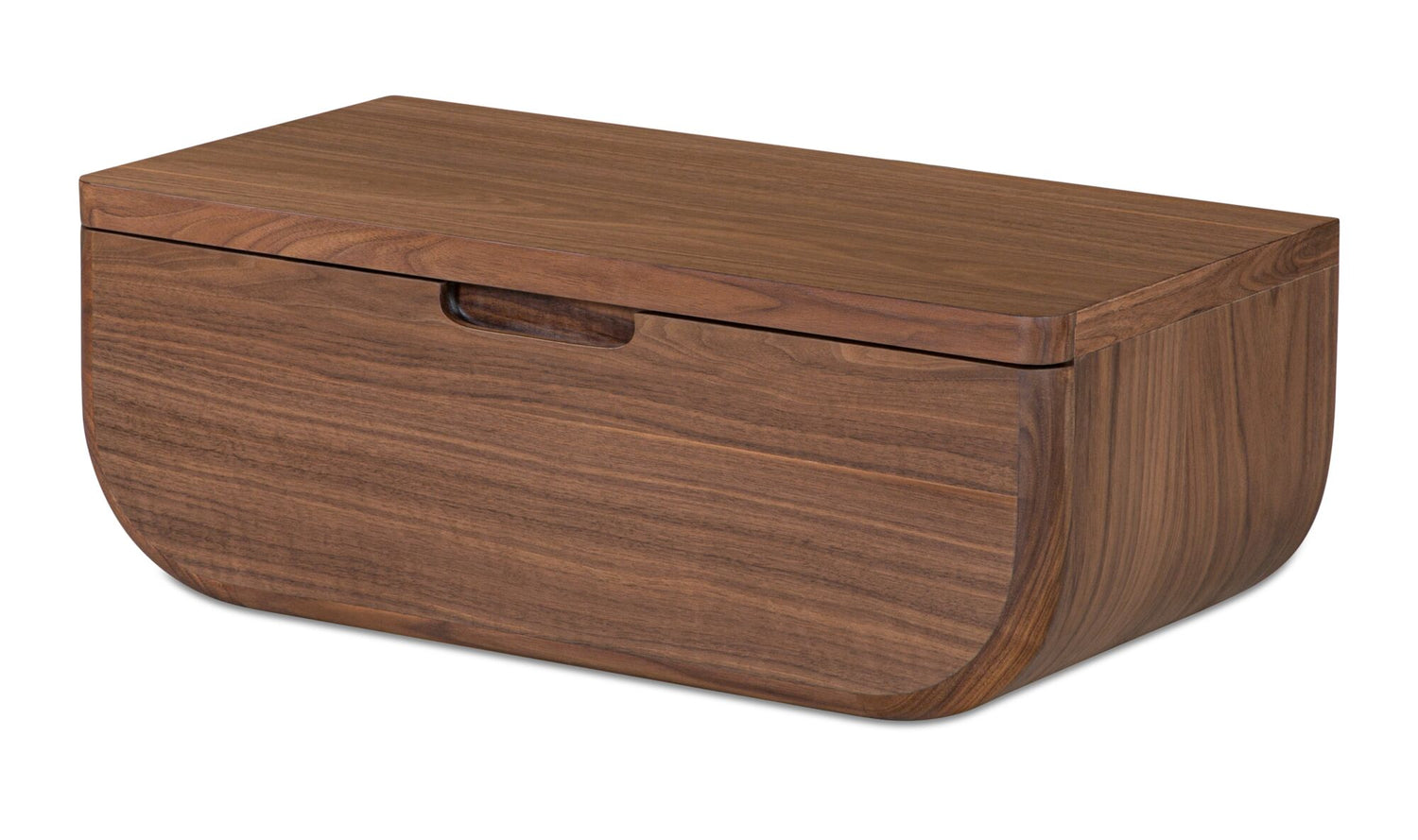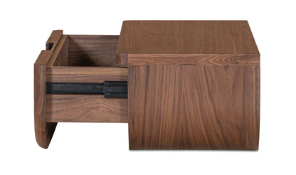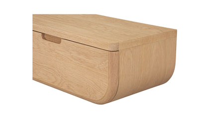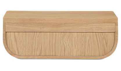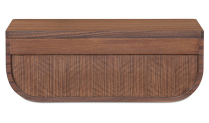 A nightstand that never touches the floor—and still keeps your bedside essentials within reach. The Halo mounts to the wall with a French cleat, freeing up floor space while tucking a concealed drawer neatly out of sight. Softly curved lines and a rich walnut finish with a solid oak edge give it a warm, grounded presence that works especially well in smaller rooms. One piece, less visual clutter, more room to breathe.