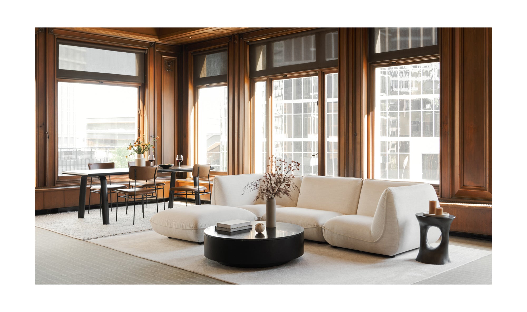 Featuring a low-slung, 70’s inspired silhouette, this modular sectional collection’s comfort-driven intention features gentle curves and a subtle floating base design, lending to a sense of weightlessness. Ready to configure into any space, Float's sumptuous upholstery provides a refined texture, while plump high-density foam and polyfill cushions ensure a luxurious seat. The Float collection is both breathtakingly future-facing and confidently retro. Available in our classic modular configurations or individually as a corner chair, slipper chair, and ottoman.
