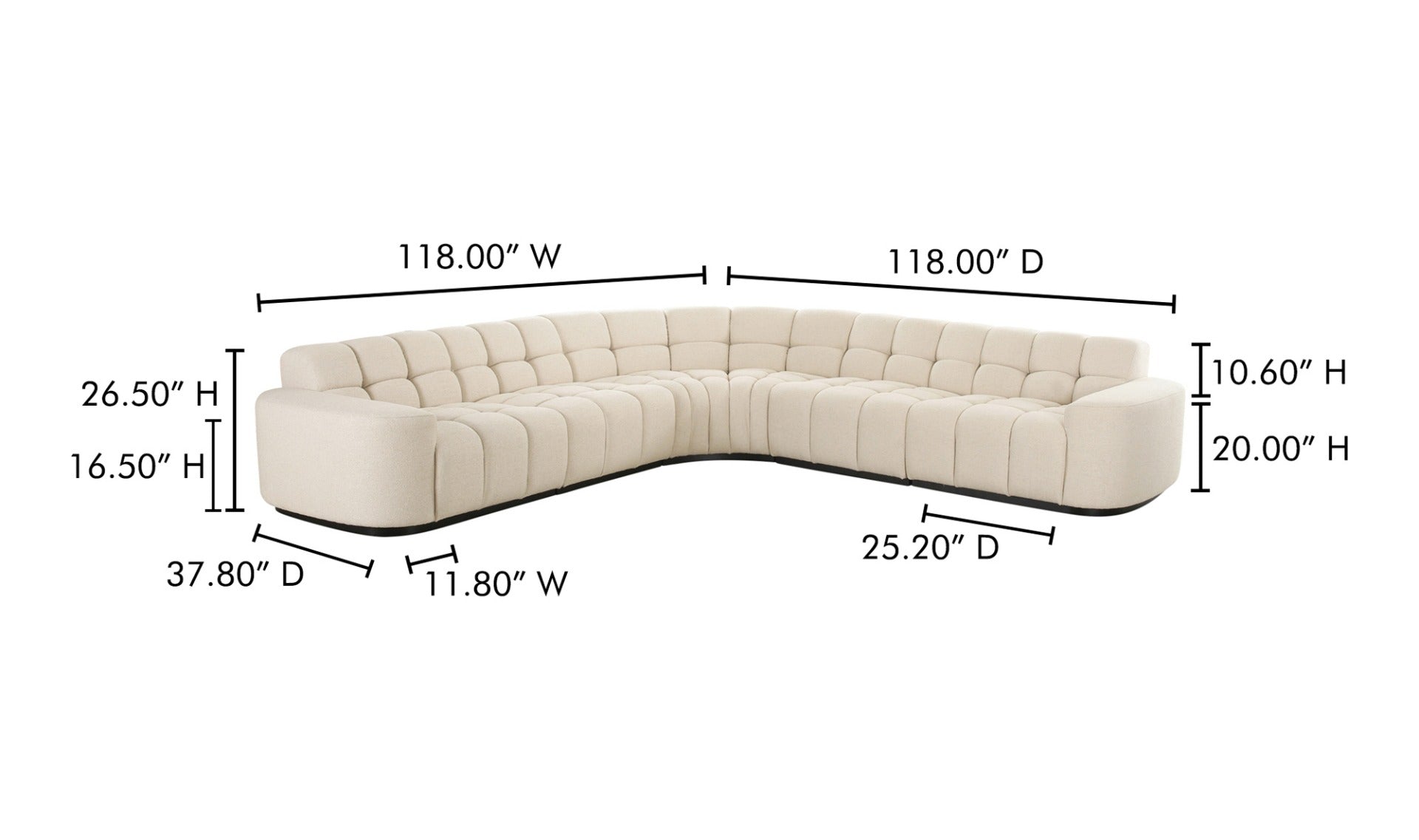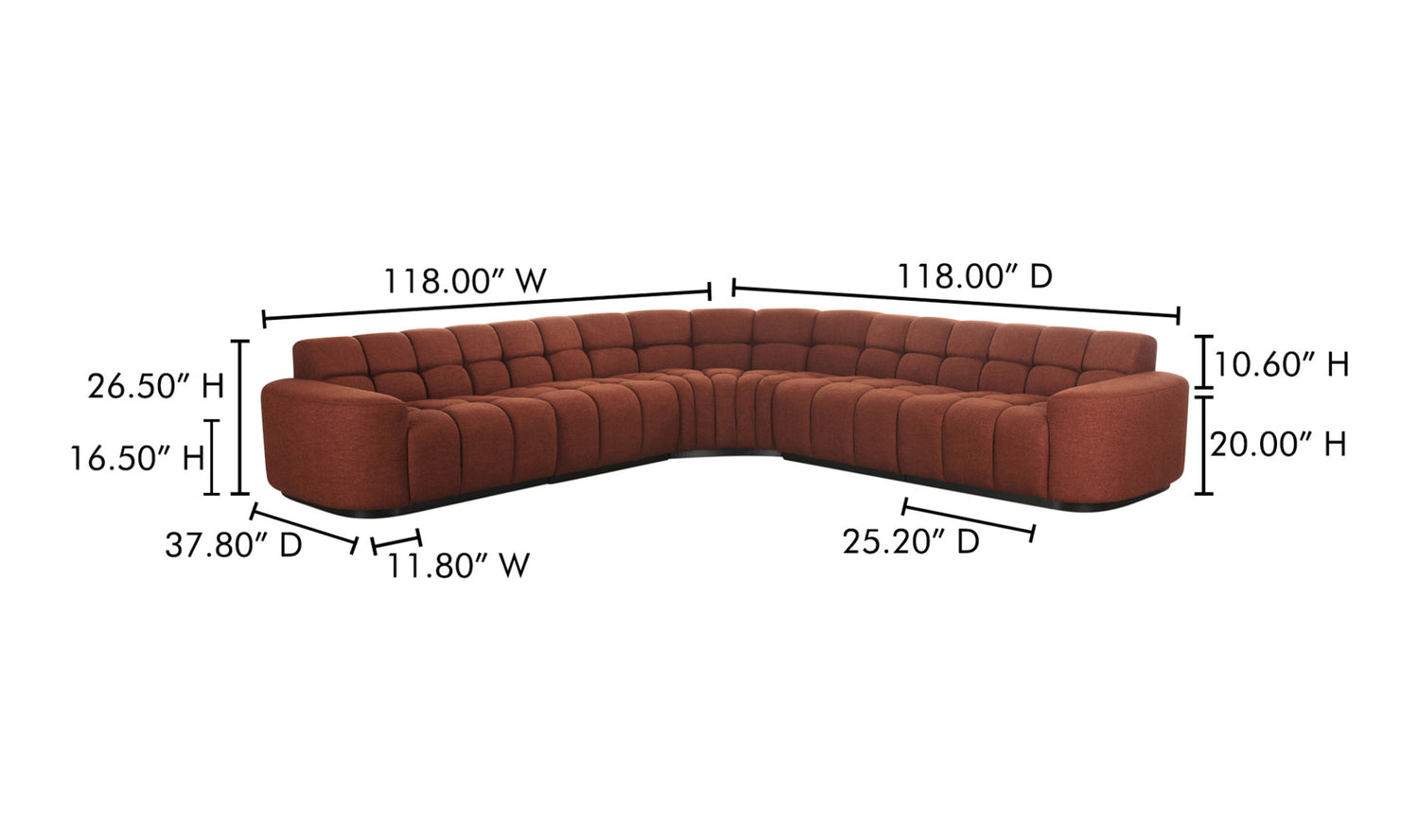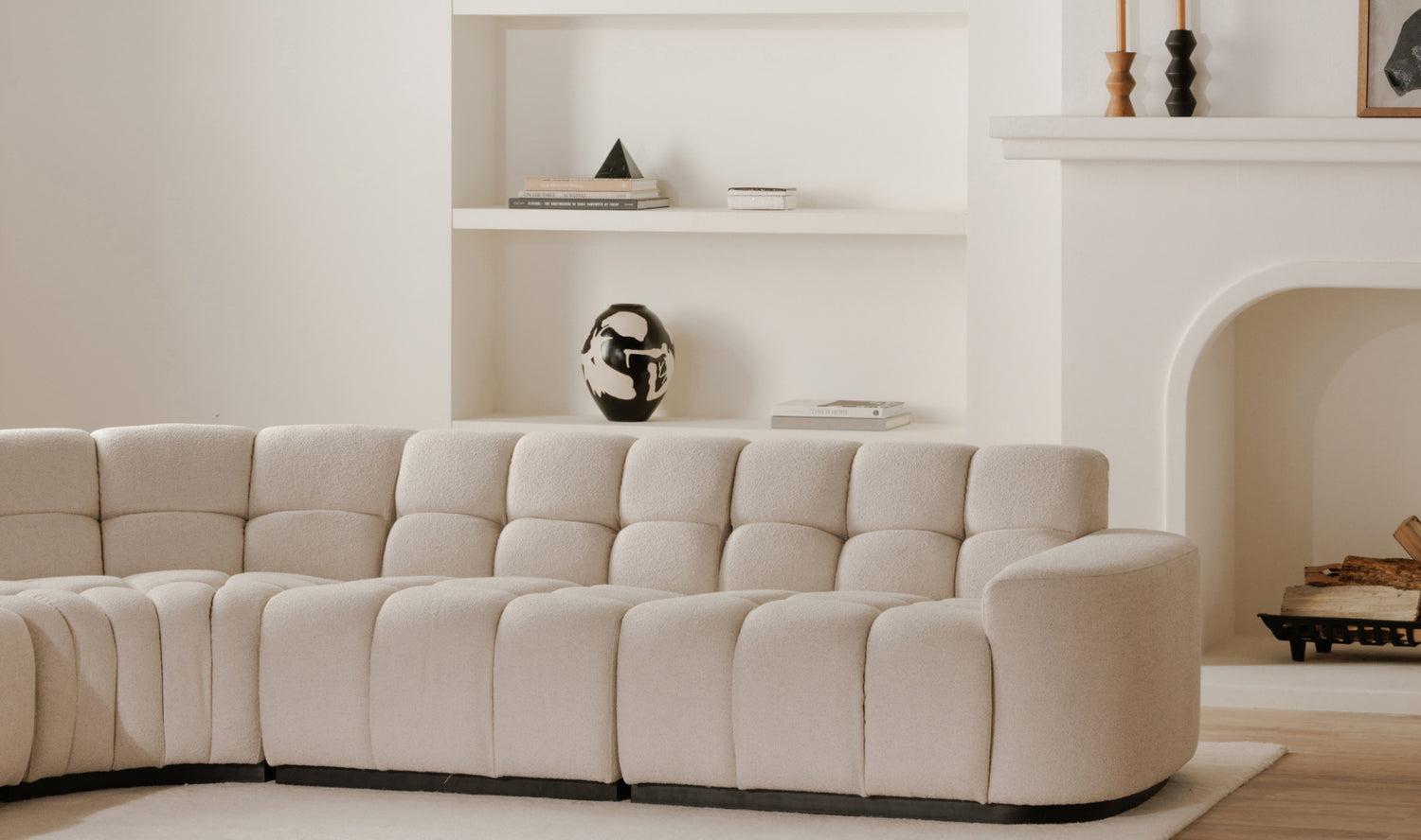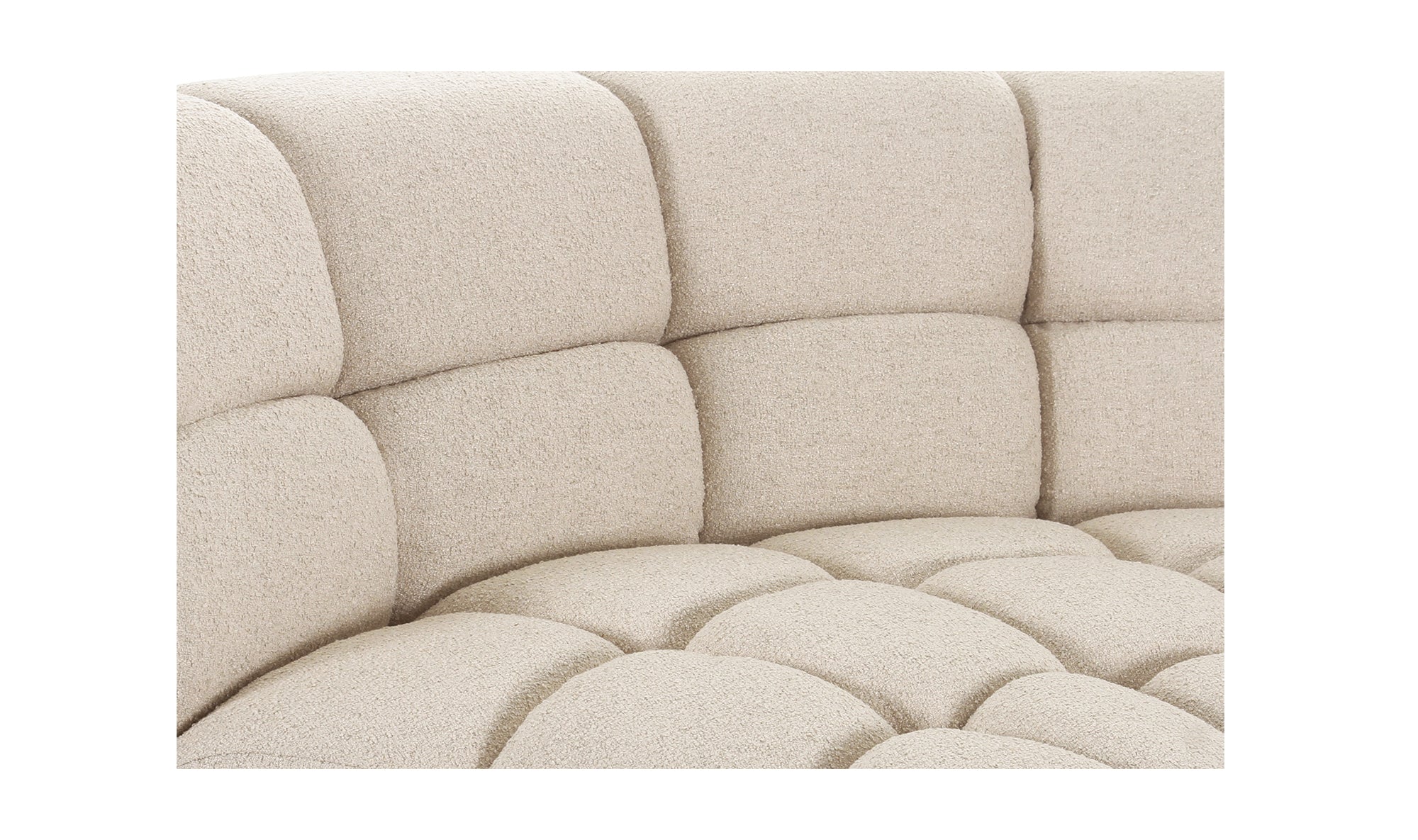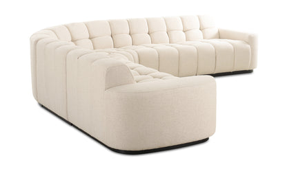 The Atlas L-shaped sectional is all about versatility, meticulously designed in five pieces. This piece nods to vintage and modernist aesthetics, featuring classic square tufting that brings depth and texture to any living space. The wide, curved arm profile introduces an element of softness, elegantly contrasting with the geometric/grid-like detailing. Topped with plush seating, it promises unparalleled comfort and style.