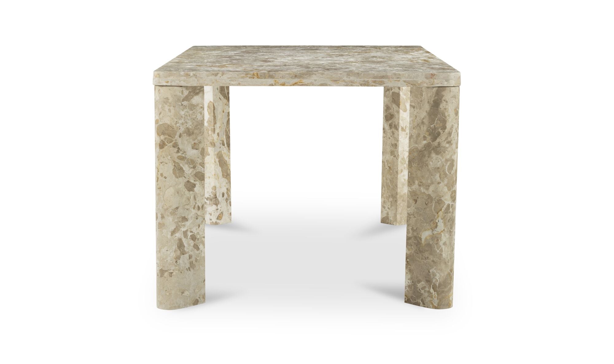 Striking stone. Solid stance. Contour isn’t shy—it leads with shape and lets the materials do the talking. The rounded base cuts into angled segments, giving it that just-right mix of curve and edge. On top, Panther stone brings the drama, with natural veining that makes each piece one of a kind. Bold but grounded, sculptural but easy to live with—this one commands attention without raising its voice.