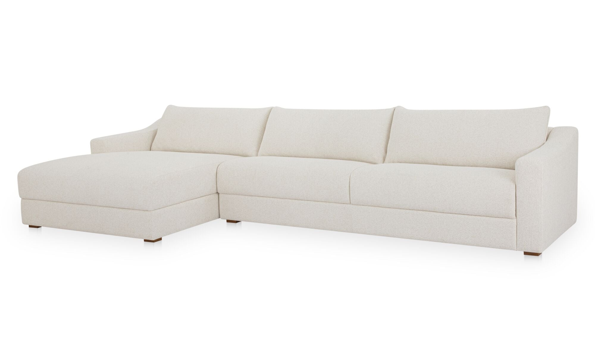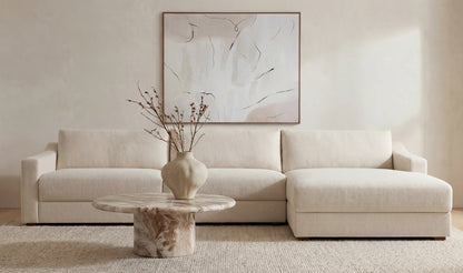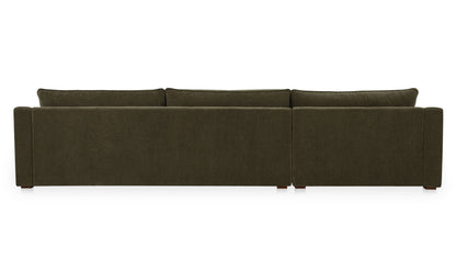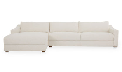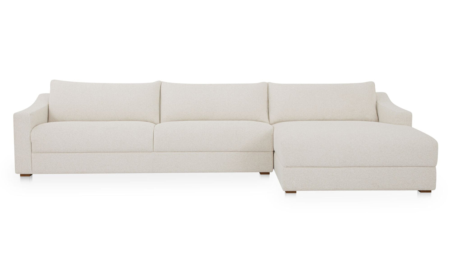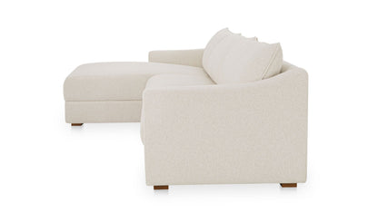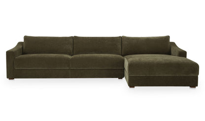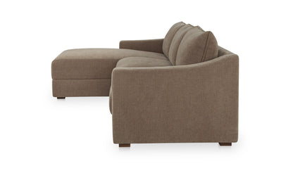 Understated design, oversized comfort. The Harbor Sectional pairs deep, fiber-filled cushions with sloped arms and piped edges for a tailored finish. Upholstered in taupe chenille with a soft, tactile hand, it’s fully wrapped and set on a hidden base for a seamless profile. Designed with the right-facing chaise, this sectional adapts effortlessly—equally at home in modern or traditional spaces.