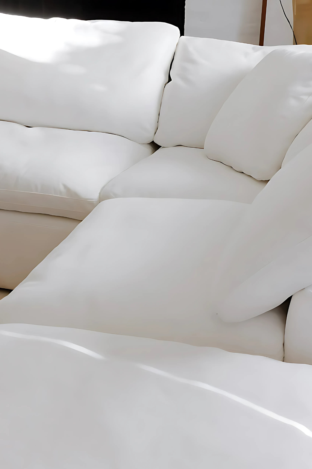 Designed for easy care. We use a 100% polyester performance fabric that is easy to clean and maintain, making it a great choice for those with white furniture.