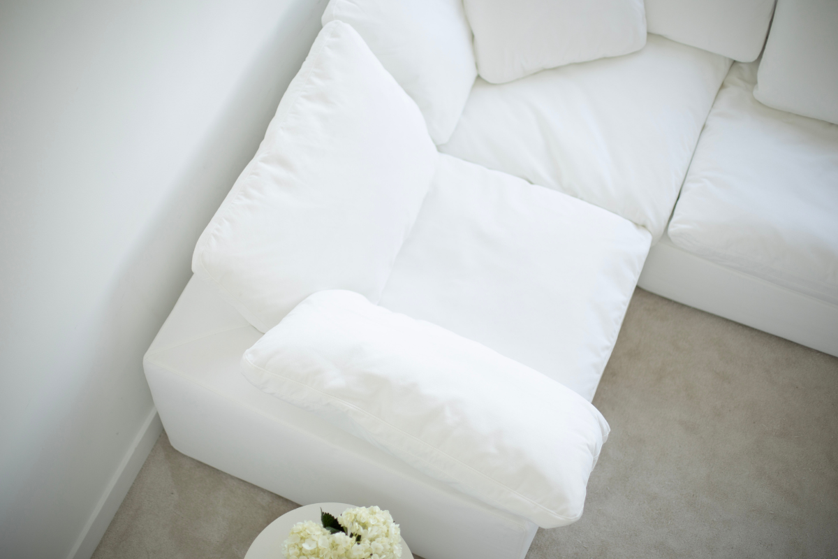 Designed for easy care. We use a 100% polyester performance fabric that is easy to clean and maintain, making it a great choice for those with white furniture.
