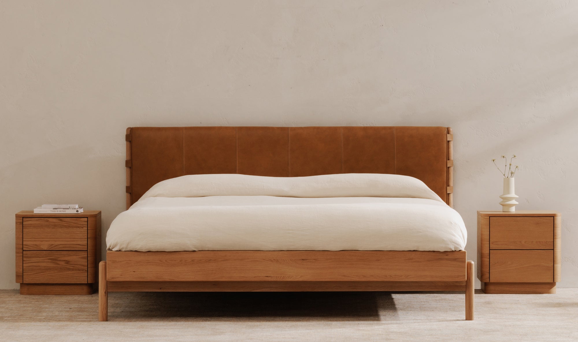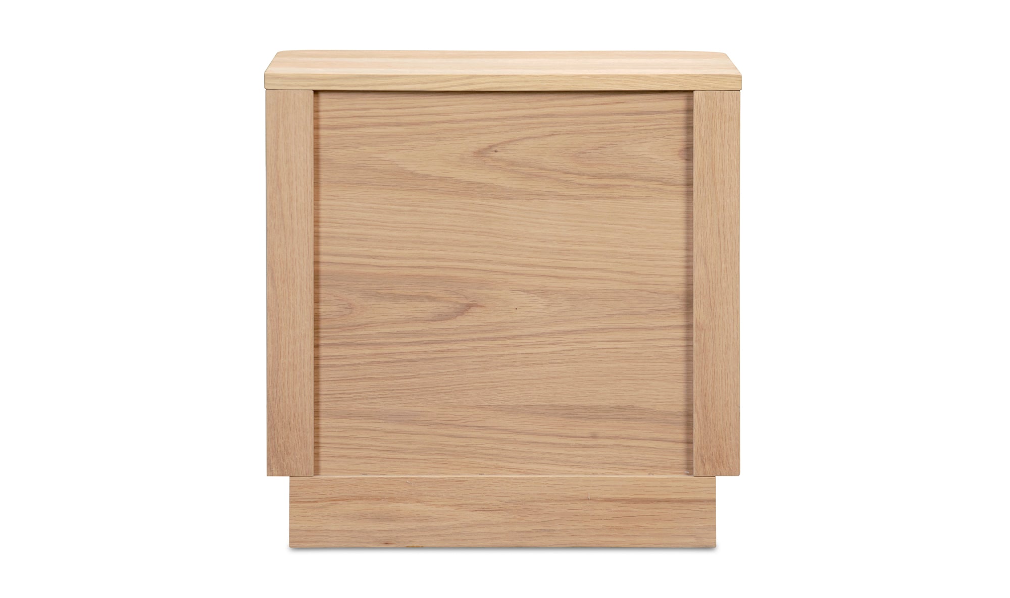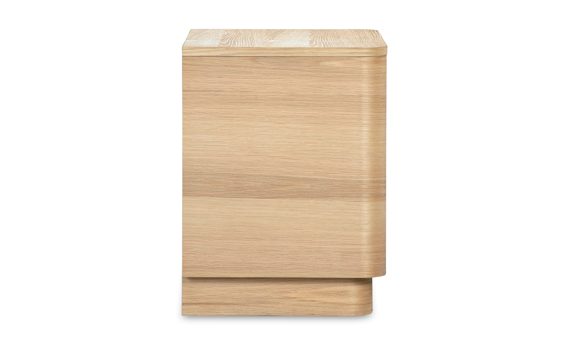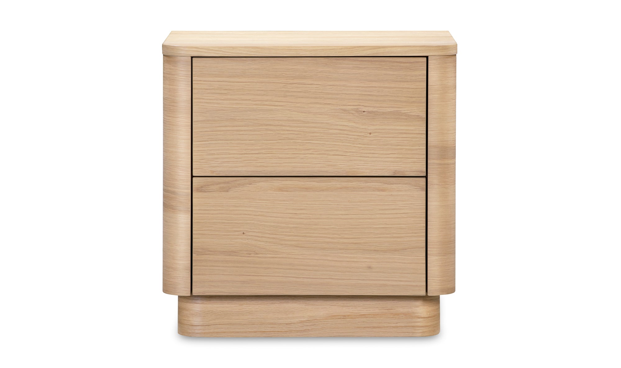 Natural allure meets minimalist design. The Level Off tall nightstand celebrates the captivating tones of natural wood grain, seamlessly integrated into a soothing design, embracing natural beauty and character. This tall nightstand boasts gently rounded corners and two large, smoothly gliding drawers that reveal generous storage space while embracing oak's natural beauty and character.