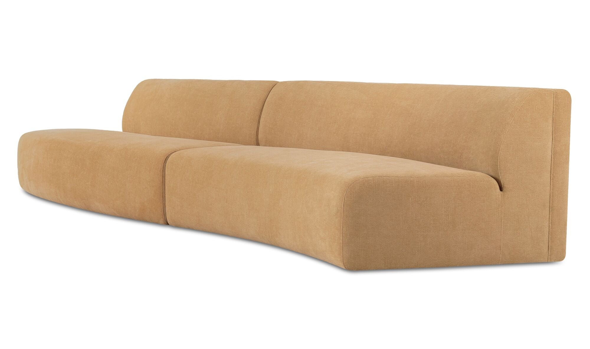 Ahead of the curve. Meridian brings curves into the conversation. This 2-piece wave modular is part of a sculptural seating system that plays well solo or paired with its counterparts. Configure it into a crescent, stretch it across a room, or build something totally custom—it’s shape-driven design that moves with the space. Upholstered in soft, textured fabric in rich tones, Meridian is as plush as it is playful. No corners, no rules—just better flow.