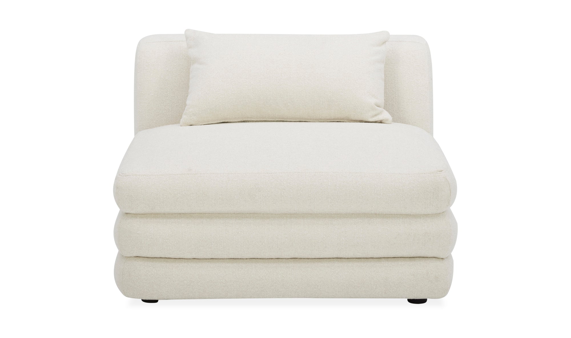 Influenced by the playful forms of the 1970s, the Nuvola armless chair showcases a layered appearance that promotes comfort. Its vintage influence and understated elegance are enhanced by the use of textured fabric. On its own or combined as a modular sectional, this piece adds visual interest while allowing for creative arrangement possibilities.