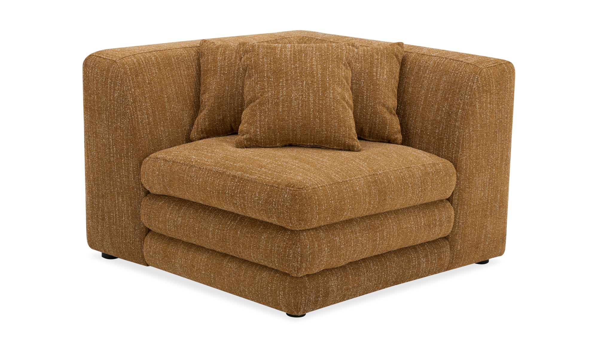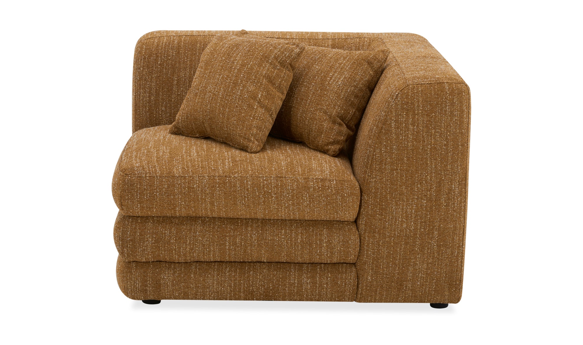 Influenced by the playful forms of the 1970s, the Nuvola corner chair showcases a layered appearance that promotes comfort. Its vintage influence and understated elegance are enhanced by the use of textured fabric. On its own or combined as a modular sectional, this piece adds visual interest while allowing for creative arrangement possibilities.