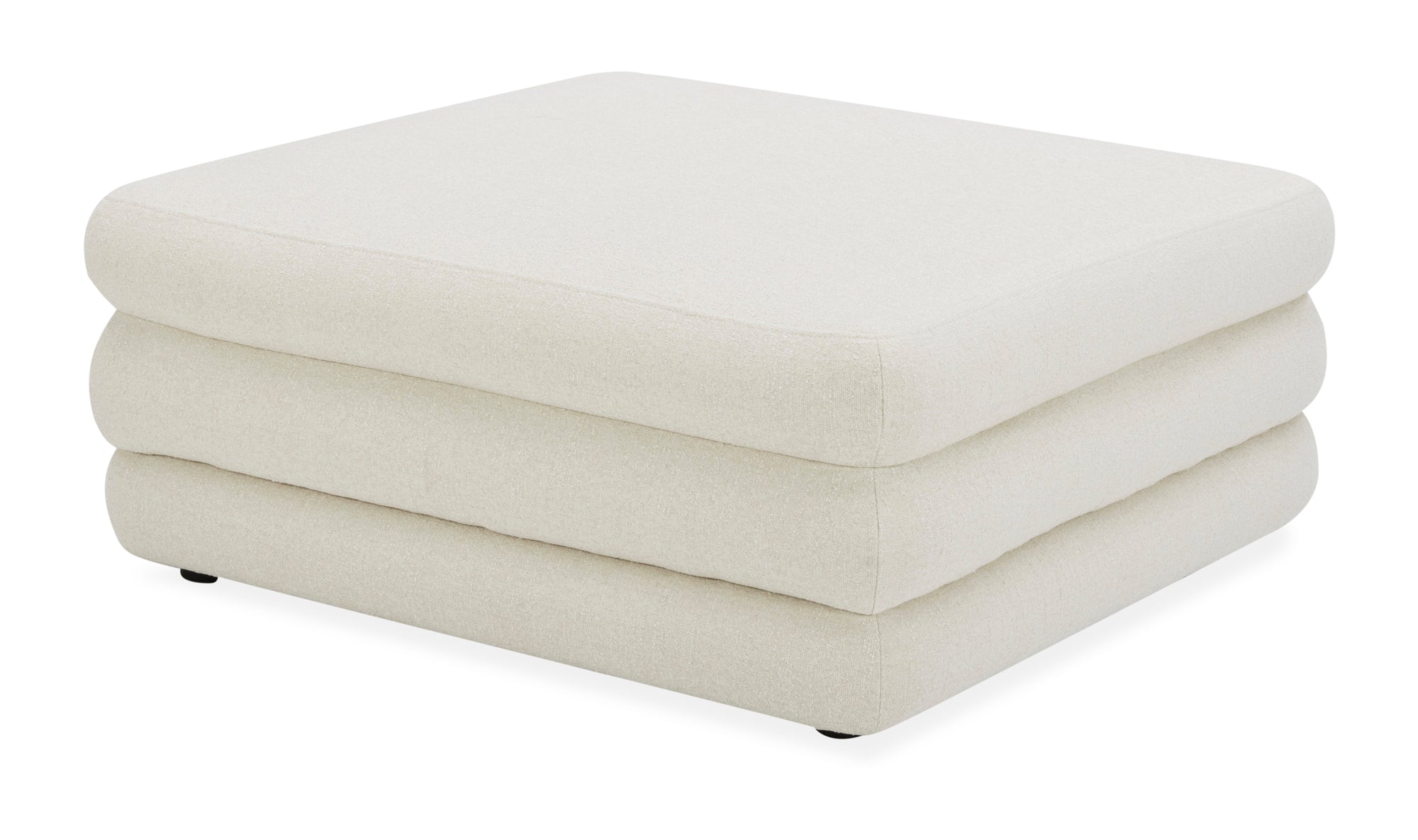Influenced by the playful forms of the 1970s, the Nuvola ottoman showcases a layered appearance that promotes comfort. Its vintage influence and understated elegance are enhanced by the use of textured fabric. On its own or combined as a modular sectional, this piece adds visual interest while allowing for creative arrangement possibilities.