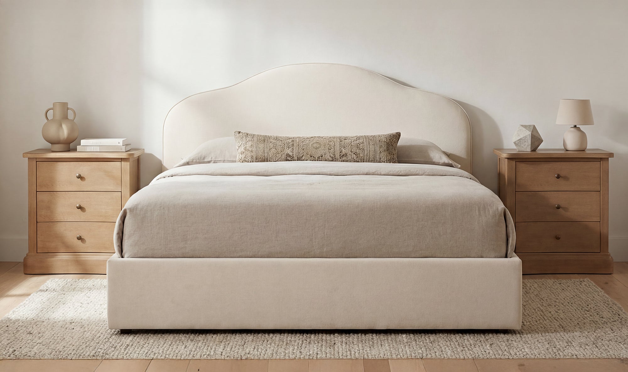 Curved profile: Gradual arch headboard tapers upward, balanced by a rounded footboard, creating a soft yet contemporary take on a traditional silhouette.